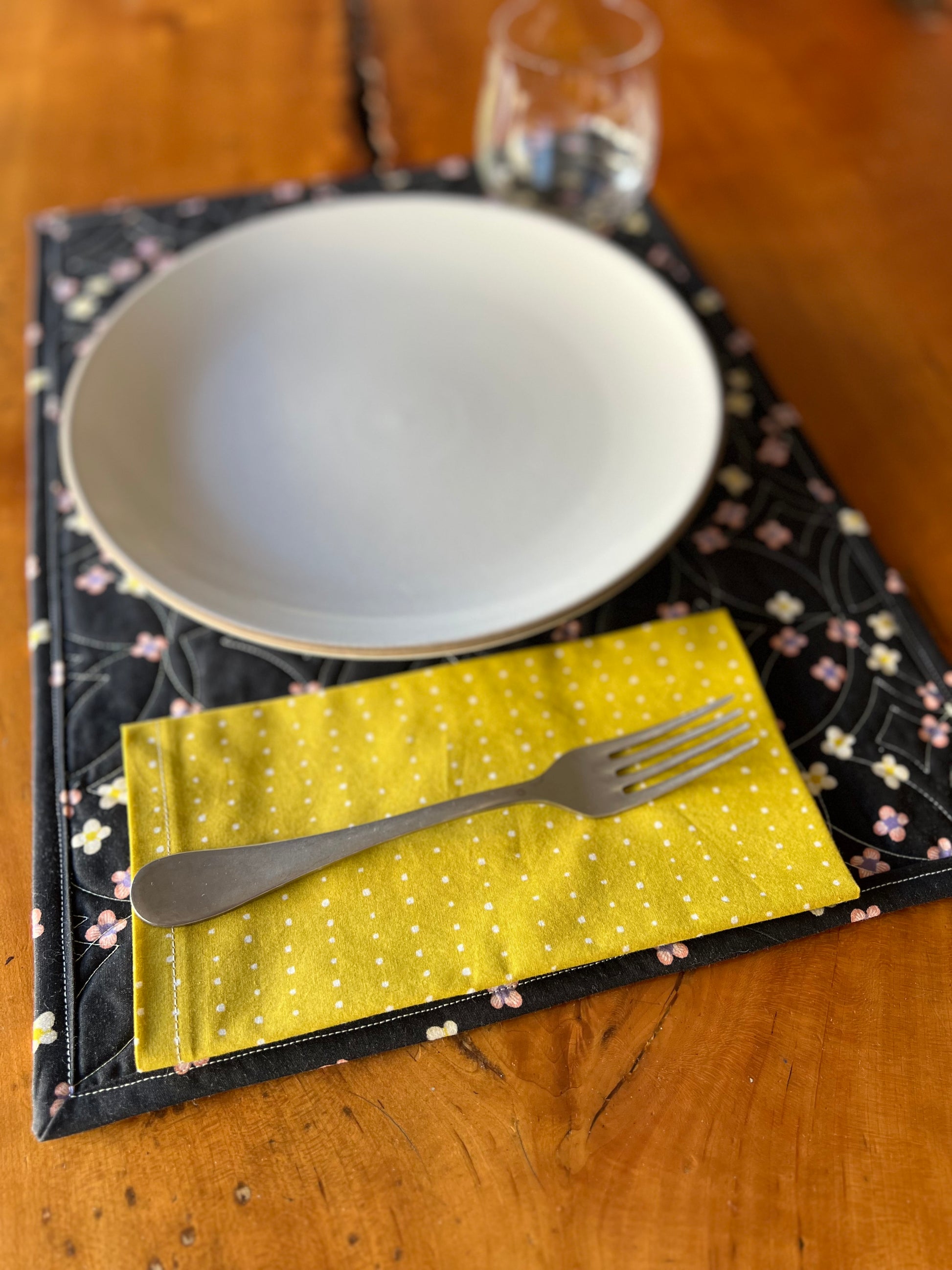 Napkins are sold in sets of 2. They’re made of high quality Quilter’s cotton and measure 18" x 18". Great for either everyday use or a special occasion, and machine washable!